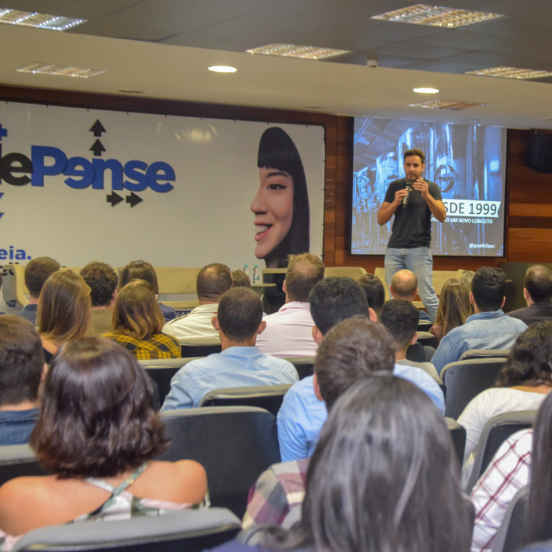Pessoas respirando inovação e trocando experiências e conhecimentos durante uma tarde inteira.